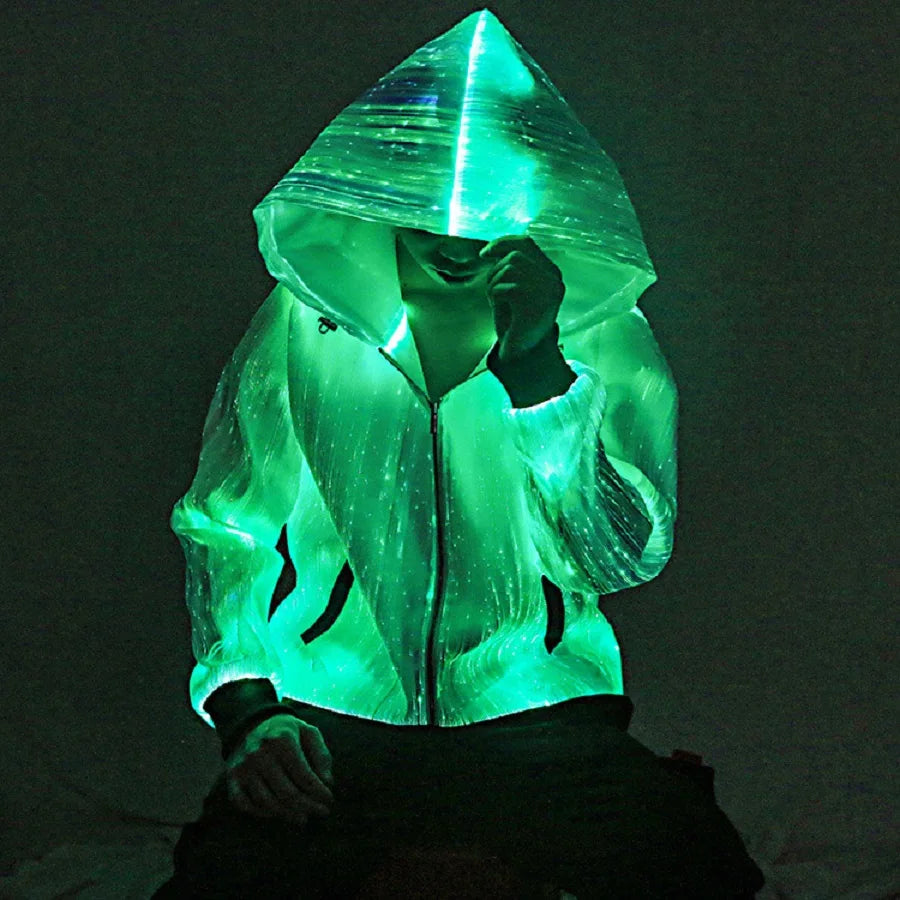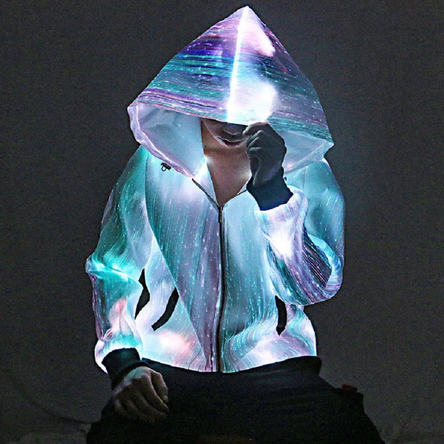Windbreaker Zip UP Hoodie Zipper Led Light Flashing Cool Men's Casual Jacket